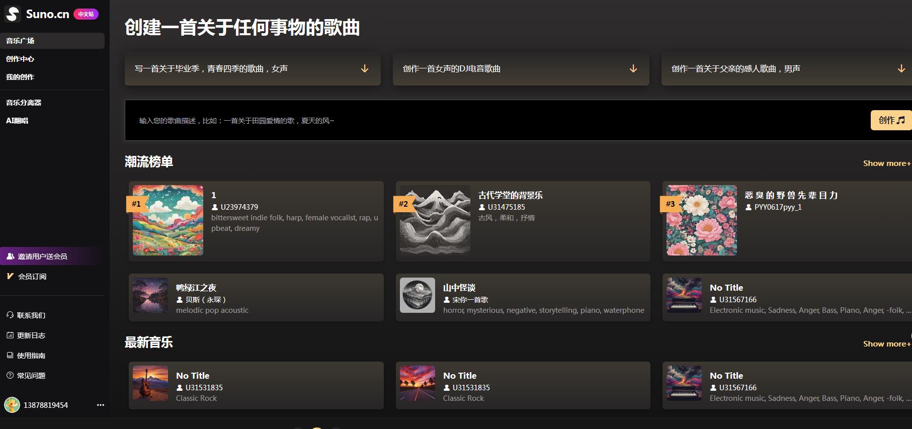 探索Suno AI音乐创作软件,轻松创作独一无二的乐章。无论音乐理论水平如何,仅需几个直观步骤,您就能完成旋律创作、和声安排与节奏设计,让音乐灵感自由流淌。Suno倾力拉近您与音...