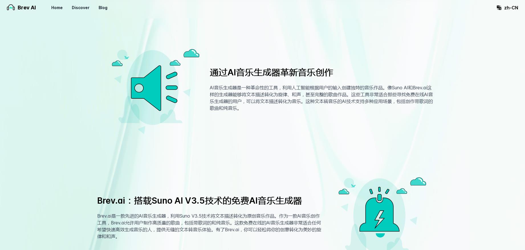 使用免费的在线 AI 音乐生成器快速创作高品质音乐。Brev.ai 采用 Suno V3.5 技术,可轻松将文本转换为独特的音乐。